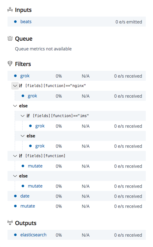 1 2 3 4 5 6 7 8 9 10 11 12 13 14 15 16 17 18 19 20 21 22 23 24 25 26 27 28 29 30 31 32 33 34 35 36 37 38 39 40 41 42 43 44 45 46 47 48 49 50 51 52 53 54 55 56 57 58 59 60 61 62 63 64 65 66 67 68 69 70 71 72 73 74 75 76 77 78 79 80 81 input { beats { port => 5044 #ssl => true #ssl_certificate => "/etc/logstash/logstash.crt" #ssl_key => "/etc/logstash/logstash.key" # 1. SSL 详情可参考 } } # filter 模块主要是数据预处理,提取一些信息,方便 elasticsearch 好归类存储。 # 2. grok 正则捕获 # 3. grok 插件语法介绍 # 4. logstash 配置语法 # 5. grok 内置 pattern filter { grok { match => {"message" => "%{EXIM_DATE:timestamp}\|%{LOGLEVEL:log_level}\|%{INT:pid}\|%{GREEDYDATA}"} # message 字段是 log 的内容,例如 2018-12-11 23:46:47.051|DEBUG|3491|helper.py:85|helper._save_to_cache|shop_session # 在这里我们提取出了 timestamp log_level pid,grok 有内置定义好的 patterns: EXIM_DATE, EXIM_DATE, INT # GREEDYDATA 贪婪数据,代表任意字符都可以匹配 } # 我们在 filebeat 里面添加了这个字段[fields][function] 的话,那就会执行对应的 match 规则去匹配 path # source 字段就是 log 的来源路径,例如 /var/log/nginx/feiyang233.club.access.log # match 后我们就可以得到 path=feiyang233.club.access if [fields][function]=="nginx" { grok { match => {"source" => "/var/log/nginx/%{GREEDYDATA:path}.log%{GREEDYDATA}"} } } # 例如 ims 日志来源是 /var/log/ims_logic/debug.log # match 后我们就可以得到 path=ims_logic else if [fields][function]=="ims" { grok { match => {"source" => "/var/log/%{GREEDYDATA:path}/%{GREEDYDATA}"} } } else { grok { match => {"source" => "/var/log/app/%{GREEDYDATA:path}/%{GREEDYDATA}"} } } # filebeat 有定义 [fields][function] 时,我们就添加上这个字段,例如 QA if [fields][function] { mutate { add_field => { "function" => "%{[fields][function]}" } } } # 因为线上的机器更多,线上的我默认不在 filebeat 添加 function,所以 else 我就添加上 live else { mutate { add_field => { "function" => "live" } } } # 在之前 filter message 时,我们得到了 timestamp,这里我们修改一下格式,添加上时区。 date { match => ["timestamp" , "yyyy-MM-dd HH:mm:ss Z"] target => "@timestamp" timezone => "Asia/Singapore" } # 将之前获得的 path 替换其中的 / 替换为 - , 因为 elasticsearch index name 有要求 # 例如 feiyang/test feiyang_test mutate { gsub => ["path","/","-"] add_field => {"host_ip" => "%{[fields][host]}"} remove_field => ["tags","@version","offset","beat","fields","exim_year","exim_month","exim_day","exim_time","timestamp"] } # remove_field 去掉一些多余的字段 } # 单节点 output 就在本机,也不需要 SSL, 但 index 的命名规则还是需要非常的注意 output { elasticsearch { hosts => ["localhost:9200"] index => "sg-%{function}-%{path}-%{+xxxx.ww}" # sg-nginx-feiyang233.club.access-2019.13 ww 代表周数 } }