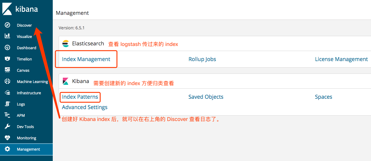 Kibana 搭建 1 2 3 4 5 6 # docker run --link YOUR_ELASTICSEARCH_CONTAINER_NAME_OR_ID:elasticsearch -p 5601:5601 {docker-repo}:{version} docker run -p 外网 IP:5601:5601 --link elasticsearch 容器的 ID:elasticsearch docker.elastic.co/kibana/kibana:6.7.0 # 注意的是 --link 官方其实并不推荐的,推荐的是 use user-defined networks https://docs.docker.com/network/links/ # 测试不用 --link 也可以通。直接用容器的 IP docker run -p 外网 IP:5601:5601 docker.elastic.co/kibana/kibana:6.7.0