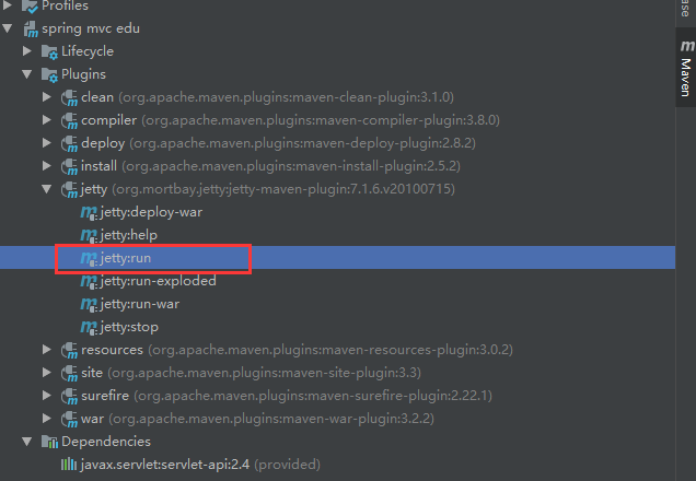 我们的项目运行在Jetty中,所以添加相关插件以及配置: