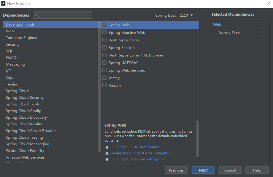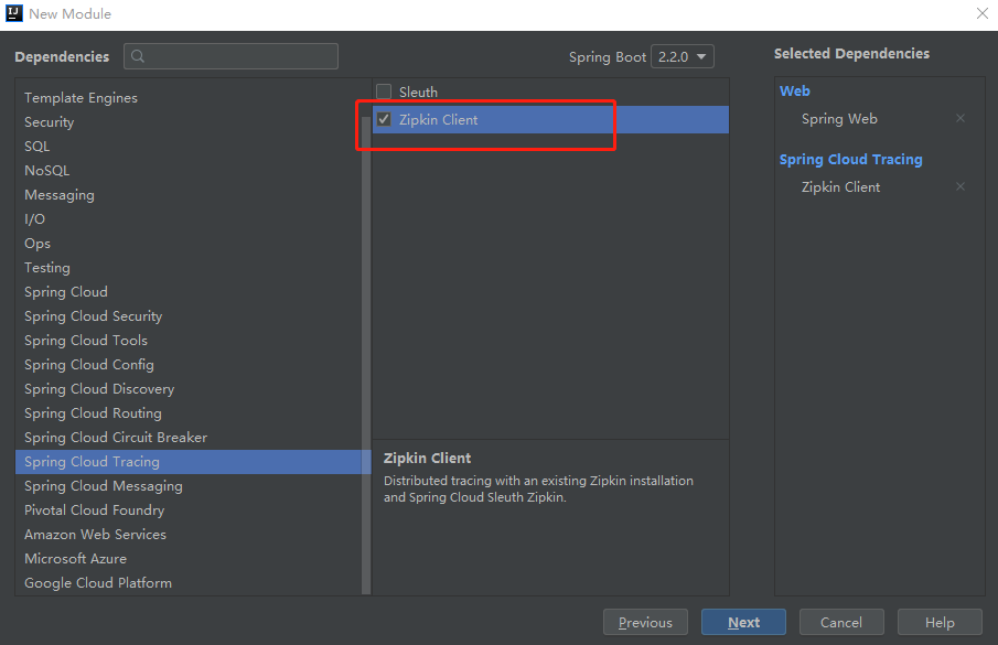 创建frontend-service项目 使用Spring Initializr新建一个Moudle,取名为frontend-service, 在Spring Cloud Discovery中勾选Eureka Discovery Client,在Web中勾选Spring Web:
