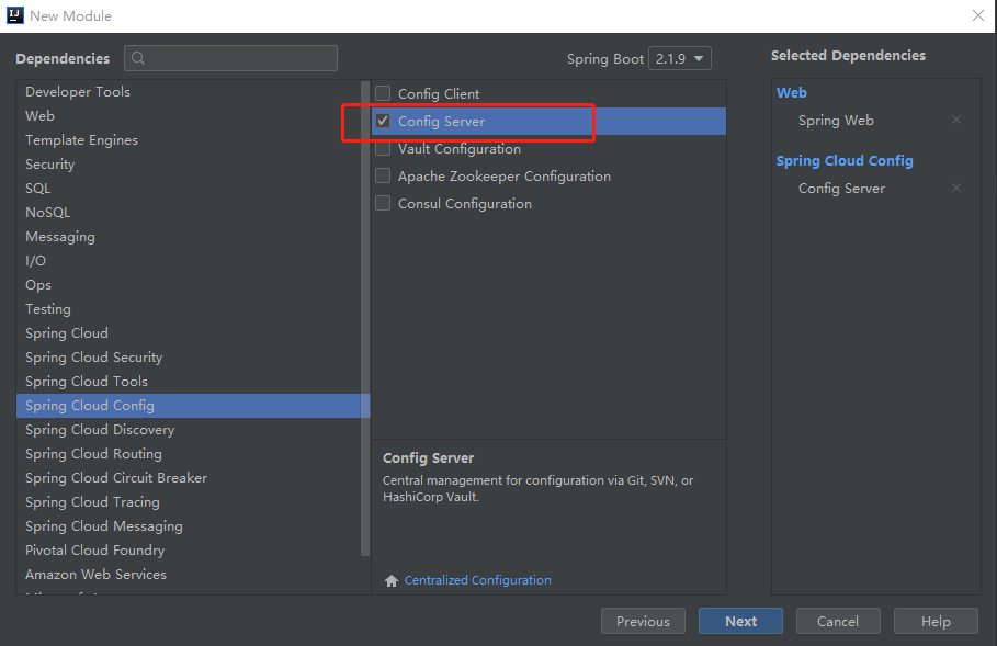 <dependencies> <dependency> <groupId>org.springframework.boot</groupId> <artifactId>spring-boot-starter-web</artifactId> </dependency> <dependency> <groupId>org.springframework.cloud</groupId> <artifactId>spring-cloud-config-server</artifactId> </dependency> </dependencies>